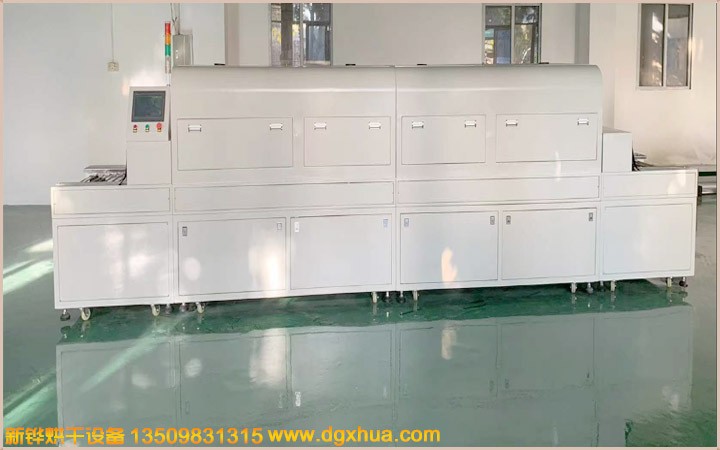 4.烘箱为20米,前18米分6段独立控温,加热采用导热油循环加热,热风进入式干燥系统,可调式内循环吸排气装置,进、排风风力强劲,干燥彻底,后2米预留安装UV干燥系统。